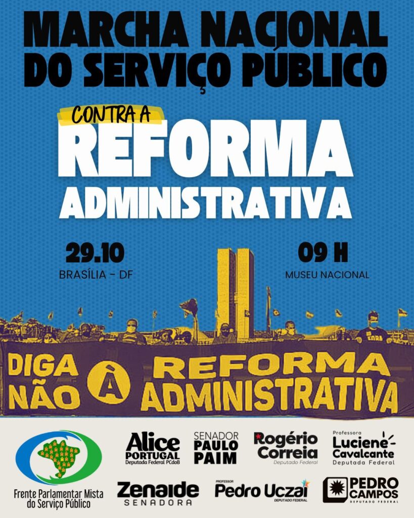 As entidades parceiras lançaram o chamado para a Marcha em resposta às ameaças representadas pela nova Reforma Administrativa. A proposta é idealizada pelos deputados Pedro Paulo e Hugo Motta. Na avaliação dos organizadores, a medida visa destruir os serviços públicos prestados à população brasileira, enfraquecendo o Estado e ampliando a precarização.